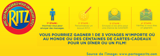 Le concours buiscuits Ritz pourrais vous faire gagner un des 3 voyages n’importe ou au monde et des centaines de cartes-cadeaux.